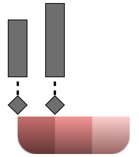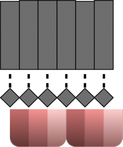 These blue BeatForms are 16th-note clusters. Notice the second cluster: It only has one diamond. Blank spaces are rests, so the second blue BeatForm is one 16th-note rest and one 16th-note.